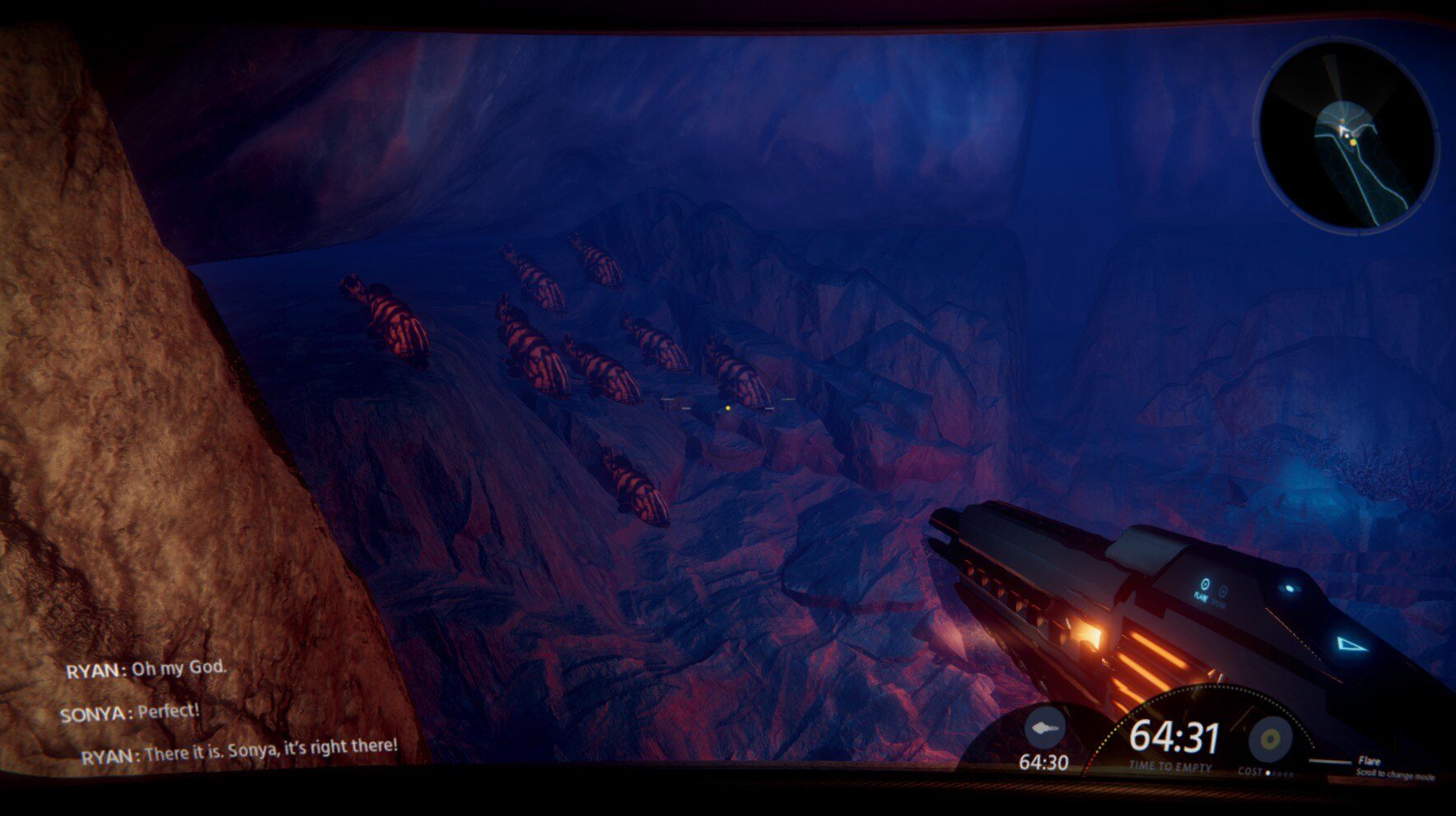 Mixing a blend of caustics, serpentine pathes, truncated ice wall tunnels, pockets of coral reefs, and twisting rock formations to create interesting level scenarios and tonally convey a player experience of being confronted with the precarious and helplessly dreadful circumstances of being trapped in underwater, uncharted abyss. There was a careful balancing act when it came with the pacing of intesity and build-up with stages of respite, exposition or downtime. Moment to moment gameplay through the levels had to comport with the voice acting, music and gameplay objectives to avoid disrupting the immersion and delivery of the story elements.