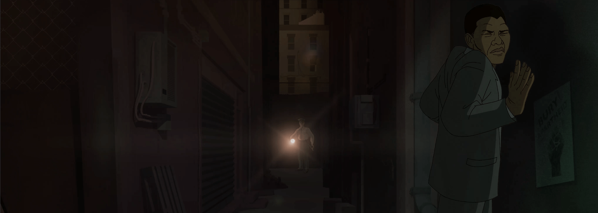 Blender, Maya and Unreal Engine were used for construction of backgrounds and their respective assets, animatic work, pre-visualization, shot layouts and timing. Photoshop, and Toon Boom Harmony were used for layering effects, pass compositing, and harmonization with the 2D animation.