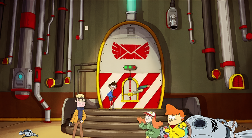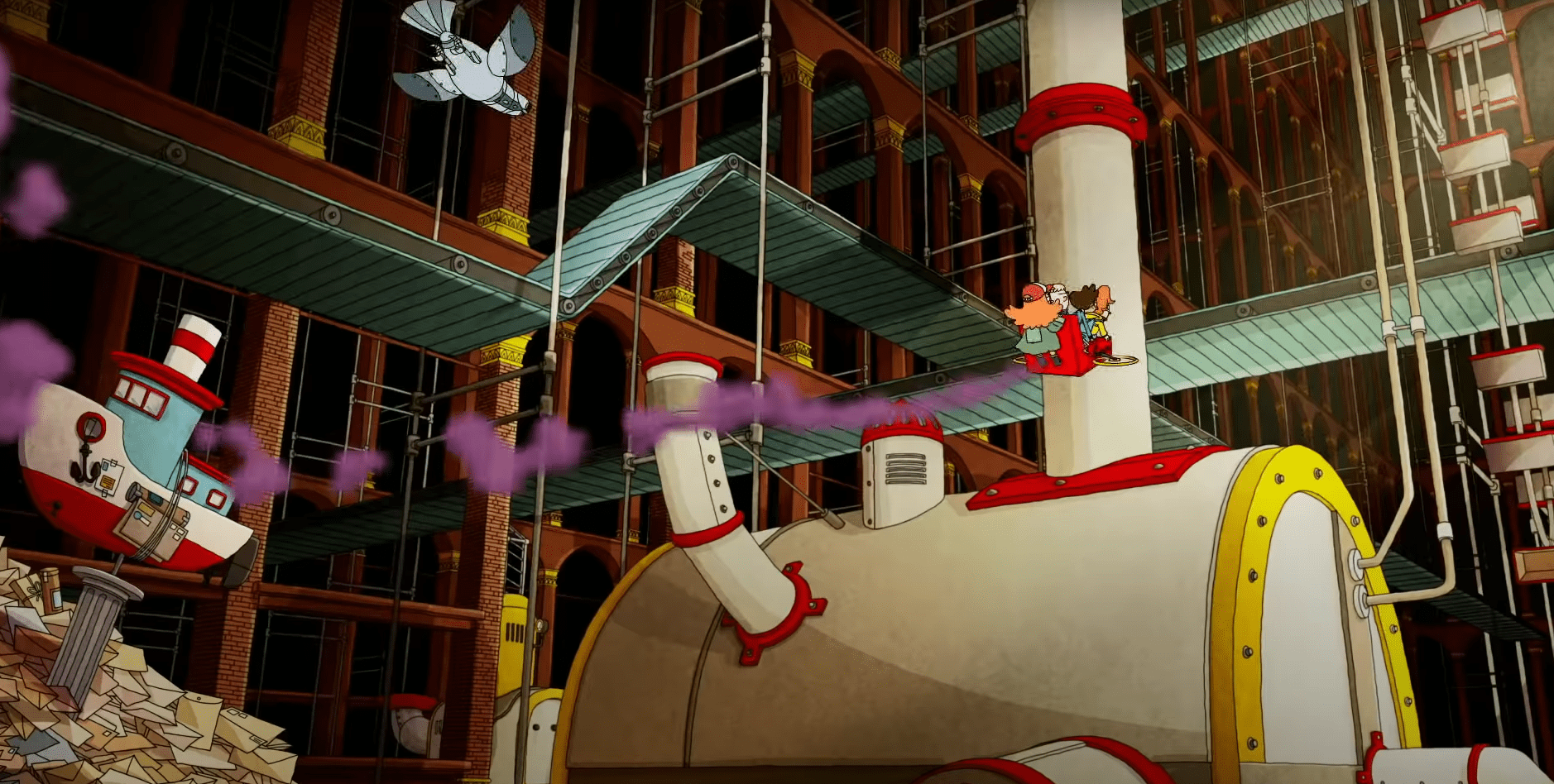 Programs used were: Blender to assemble the environments, asset kits and shot layouts, exports of passes were then delivered into Photoshop and composited into Toon Boom Harmony.
